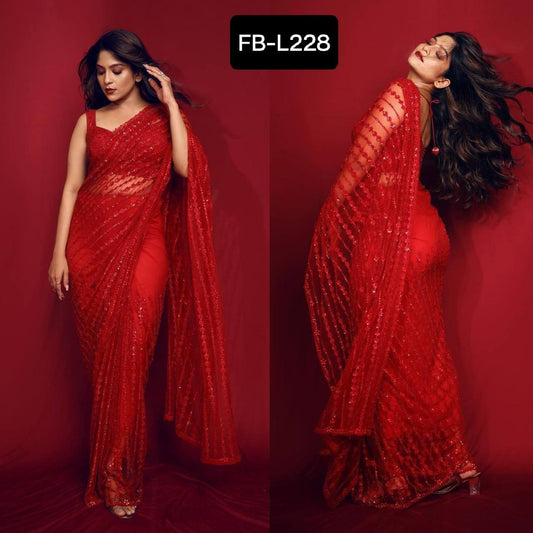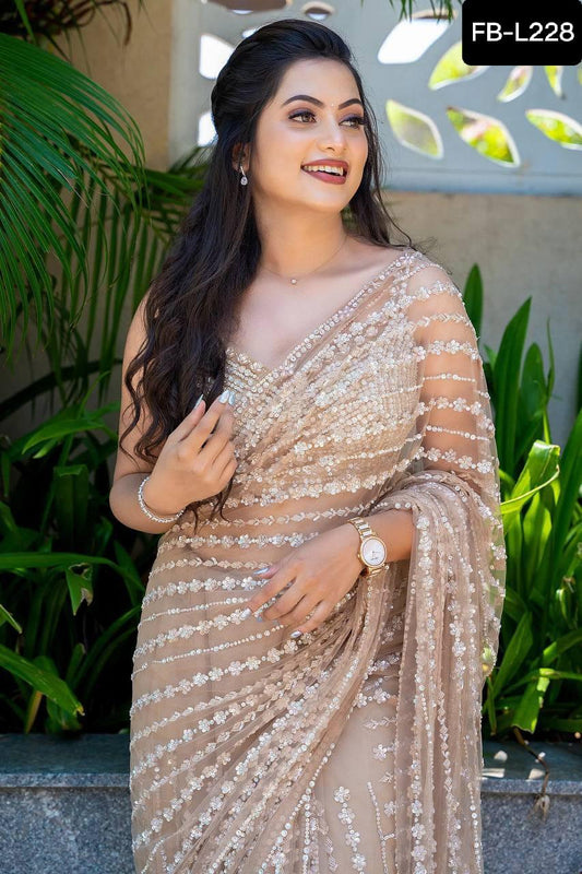 FB L228 – Milky Rainbow Sequence Net Saree with Thread & Jhalar Work