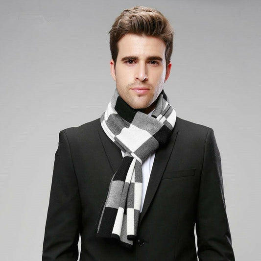All-match Simple Men's Plaid Warm Scarf