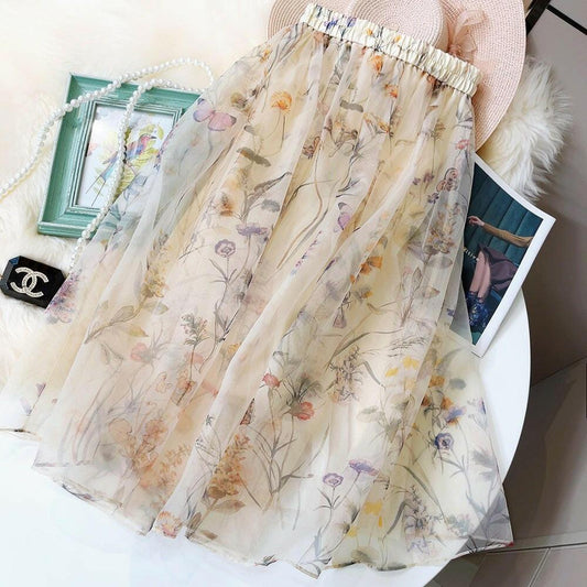 Women's Mid-length Chiffon Romantic Printed Skirt
