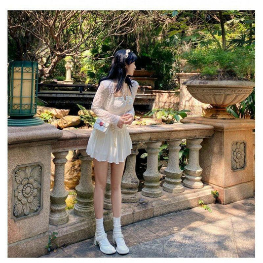 Seaside Vacation Style Two-piece Collar Short Ruffled Shirt High Waist Skirt Outfit