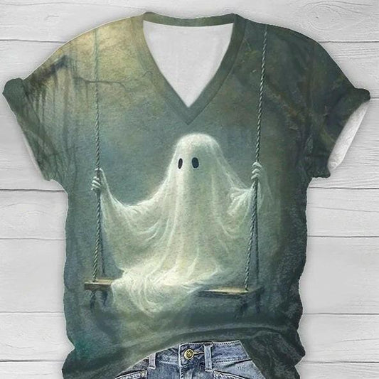 Halloween Pattern Printed Short-sleeved V-neck T-shirt Women's Top