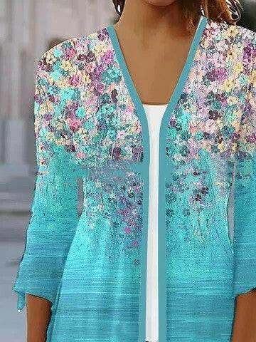 Women's Fashion Casual Printing Bubble Long Sleeve Waist Top