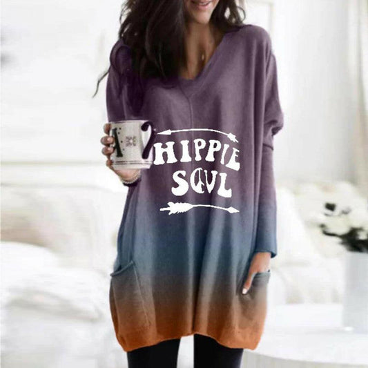 Women's Summer New Round Neck Long Sleeve Digital Printing