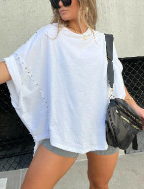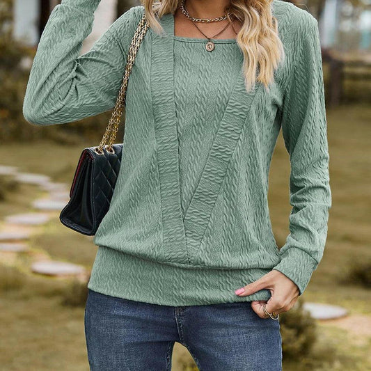 Square Collar Cross Loose Long-sleeved T-shirt Top For Women