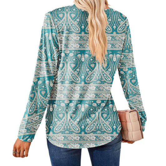 Printed Women's Long Sleeve Lapel Button Ladies Shirt