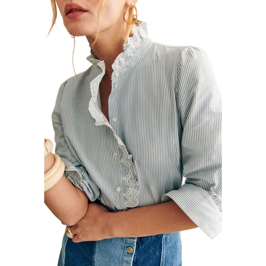 Casual Round Neck Solid Color Lantern Sleeve Shirt For Women
