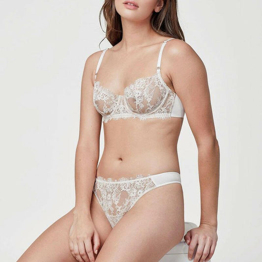 Underwear Women Big Chest Small French Transparent Color Sexy Eyelashes Lace Untra Thin Breathable Bra T Back Suit