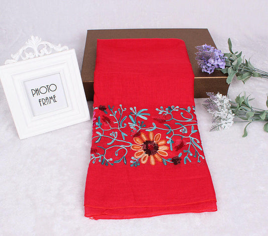 Ethnic Style Embroidered Floral Scarf Shawl Sunscreen Silk Female