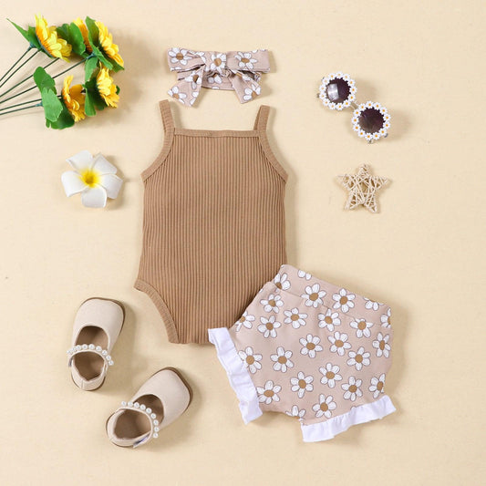 Letter Romper Full Printed Shorts Headscarf Three-piece Set