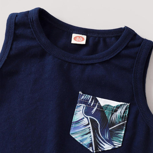 Sleeveless Solid Color Top Printed Shorts Two-piece Suit