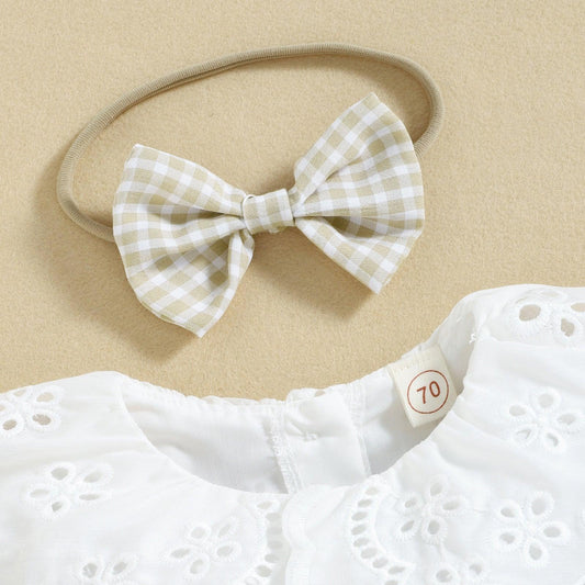 Infant Col Claudine Top Stitching Plaid Triangle Romper Suit