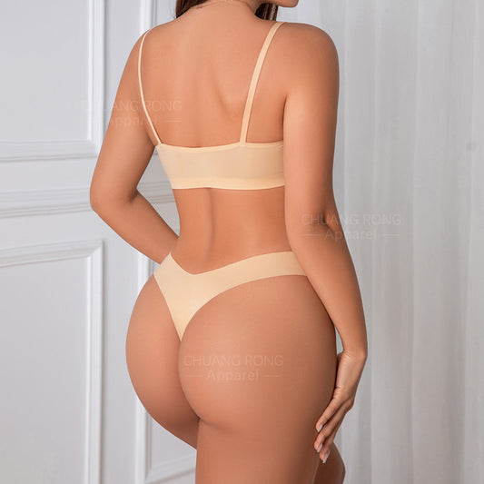 Underwear Sexy Black Sports Bra Hollow Out Cutout out Underwear Spaghetti Strap Slip