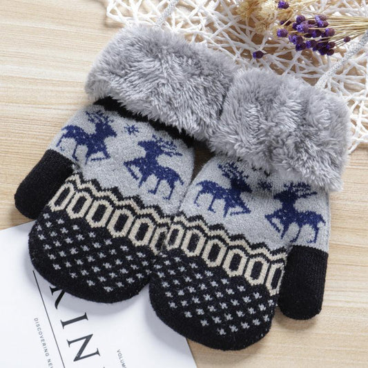 Cute Middle And Big Kids Halter Neck Bag Finger Knitted Gloves