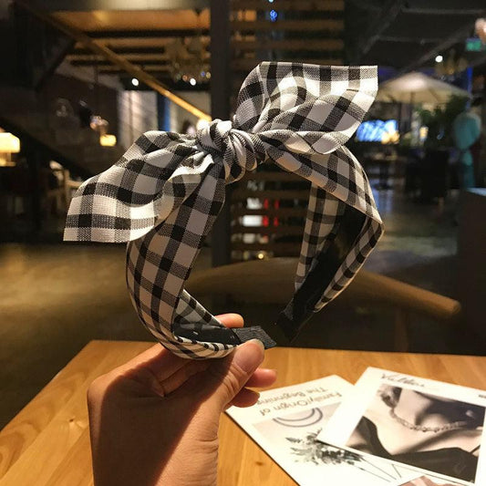 Plaid Knot In The Middle Bow Fabric Headband