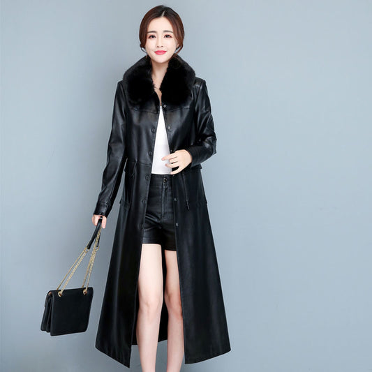 Ladies Fashion Thin Leather Trench Coat – Korean Style Sheepskin Outerwear