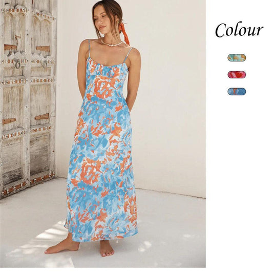 Women's Summer New V-neck High Waist Sleeveless Printed Vest Dress