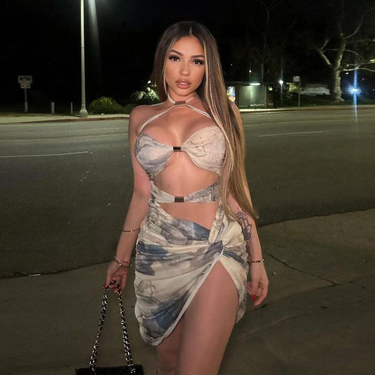 European And American V-neck Halter Hot Girl Women's Pullover Sheath Dress