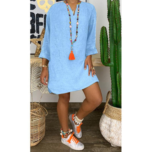 New Indian Style Loose Long Sleeve Cotton Linen Skirt