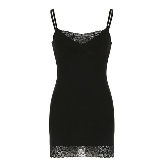 European And American Hot Girl Sexy Lace Stitching Sling Dress Women