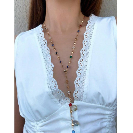 Colorful Crystal Metal Clavicle Chain Simple Long Eye Necklace