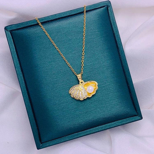 Diamond Fashion Shell Pearl Titanium Steel Anti-fading Necklace