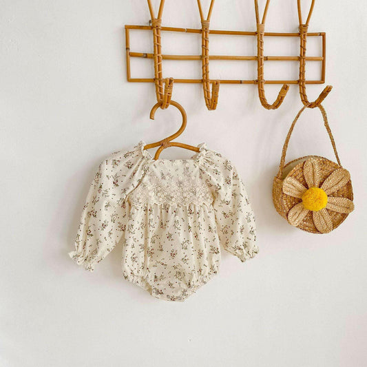 Baby Girl's Floral Lace Long-sleeved One-piece Romper