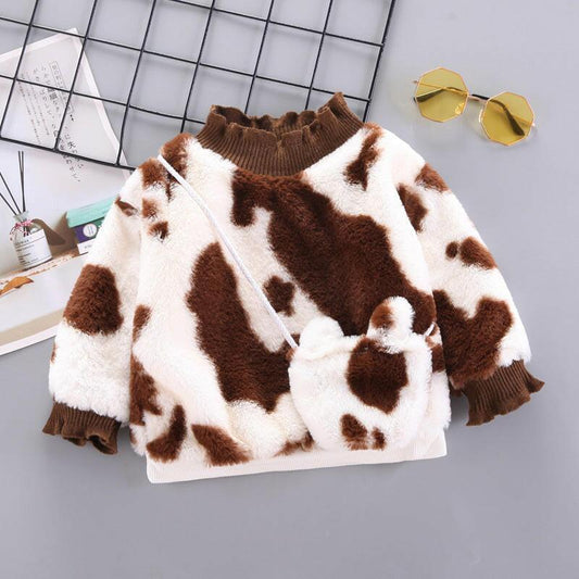 Long-sleeved Warm Sweater With Plush Rabbit Fur For Children And Infants