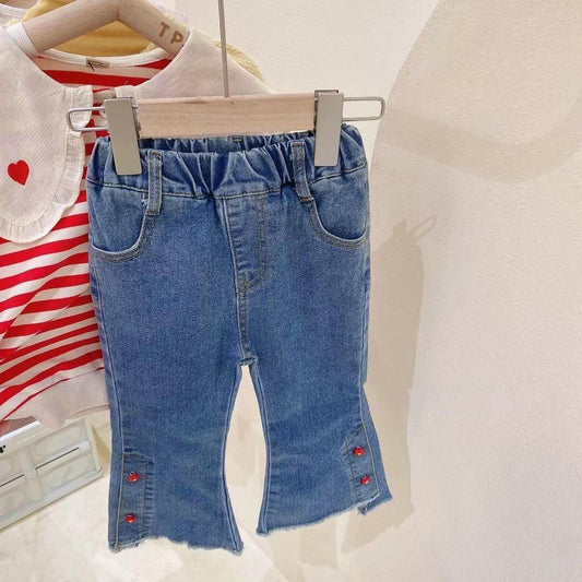Two Piece Striped Sweater And Floret Denim Flare Pants