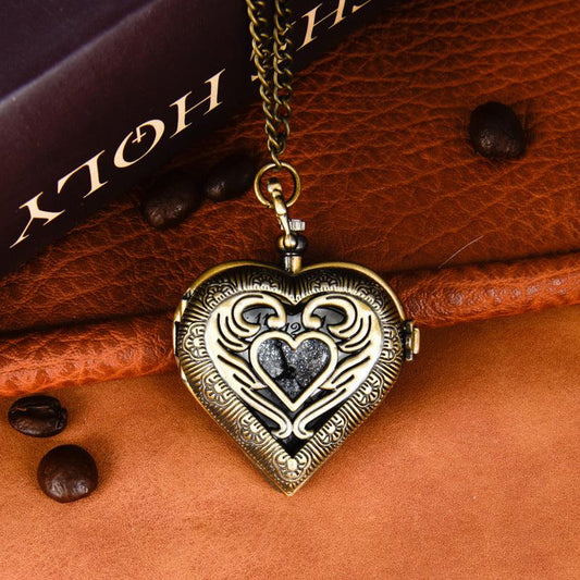 Quartz Watch Retro Hollow Heart-shaped Pocket Watch With Diamond