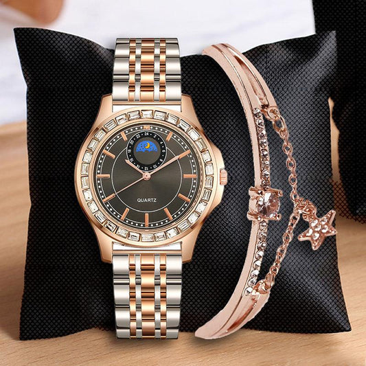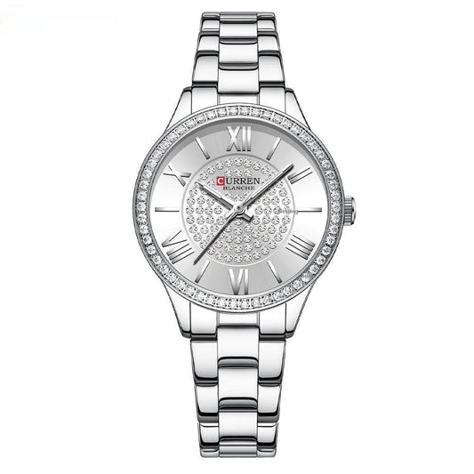 Lady Temperament Simple Rhinestone Steel Strap Watch