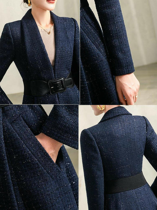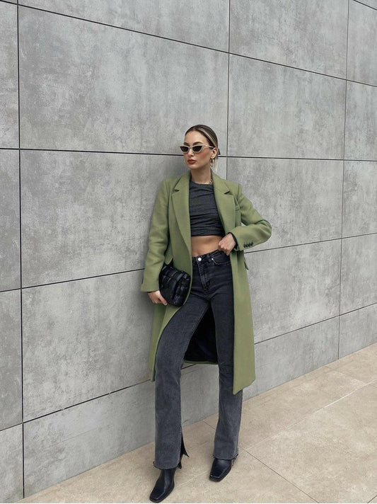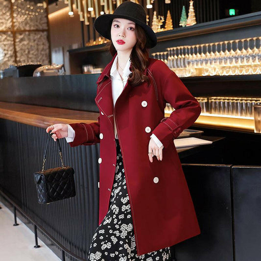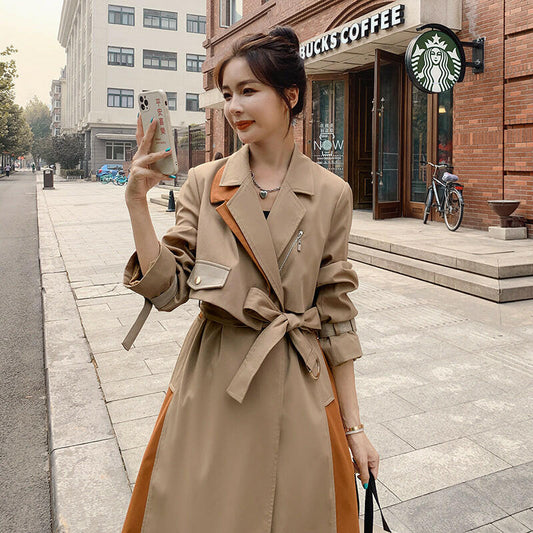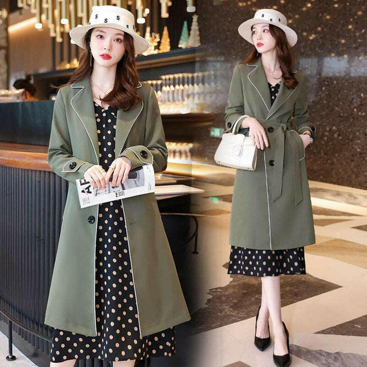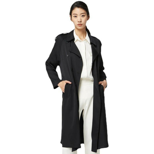 Women's Over-the-knee Mid-length Trench Coat With Silk Waist