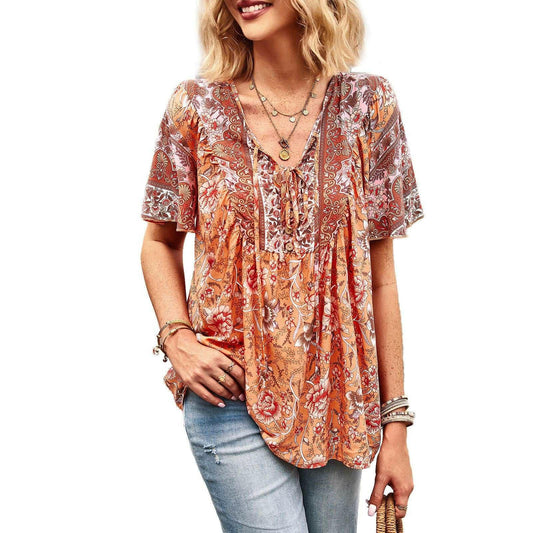 Asiatisches bedrucktes Hemd für Damen, Pendler-Oberteil mit lässigem Kragen