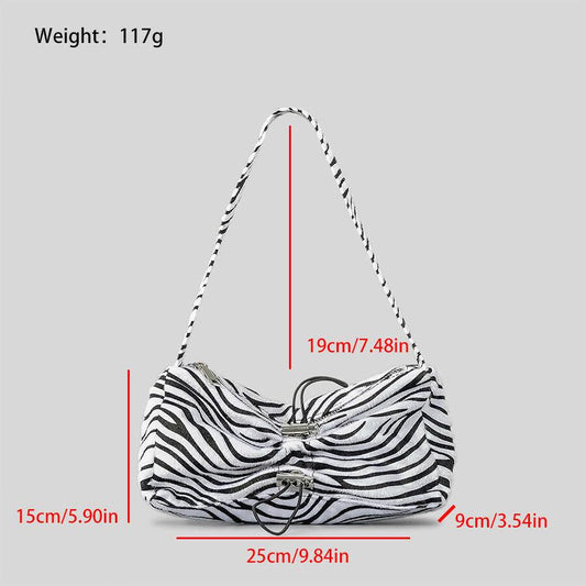 Herbst und Winter Kordelzug Rüschen Zebrastreifen Unterarmtasche Damen