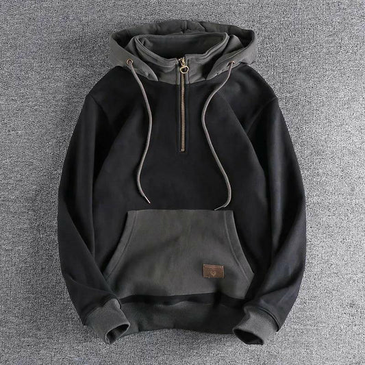 Retro-Kapuzenpullover für Herren im Herbst und Winter mit Fleecefutter und Stehkragen in trendigen Kontrastfarben