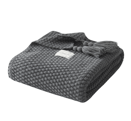 Wool Fringed Knitting Blanket