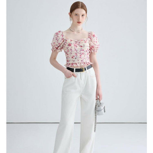 Französisches Slim-Fit-Kurzarmhemd mit Blumendruck