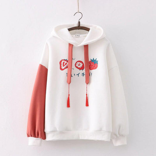 Plüsch- und dicker Pullover mit Quasten-Kapuze
