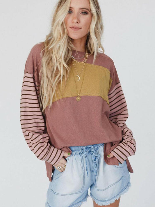 Damen-Kapuzenpullover, lässig, gestreift, farblich abgestimmt, langärmeliges Oberteil