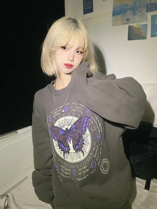 Lockerer Pullover mit Retro-Schmetterlingsmuster für Damen