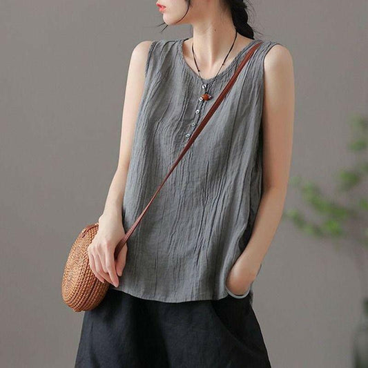 Loses, ärmelloses All-Match-Westenoberteil aus Baumwolle und Leinen für Damen