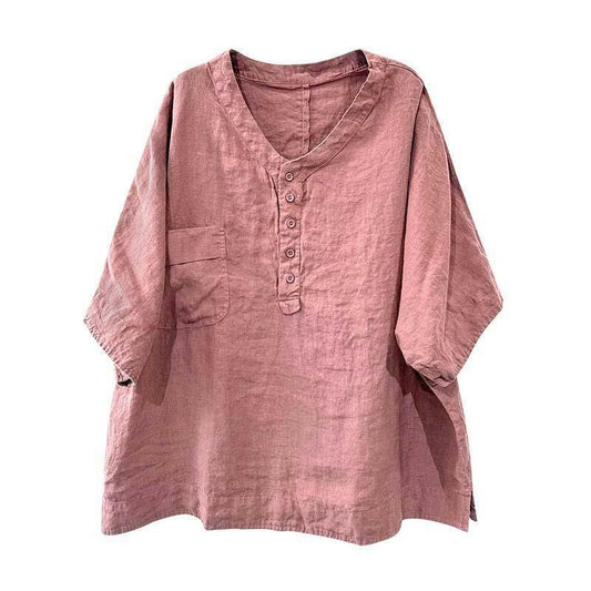 Modische lockere Oberteile aus Baumwolle und Leinen für Damen