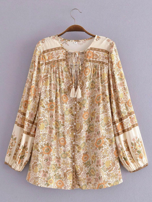 Vintage-Langarmshirt aus Rayon mit gewaschenem Druck