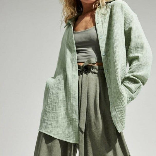 Lockeres, lässiges Baumwoll-Langarmhemd in mittlerer Länge