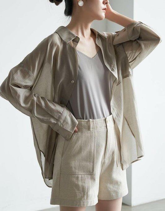 Mittellanges, leichtes, durchsichtiges, einfarbiges Hemd für den Strandurlaub für Damen