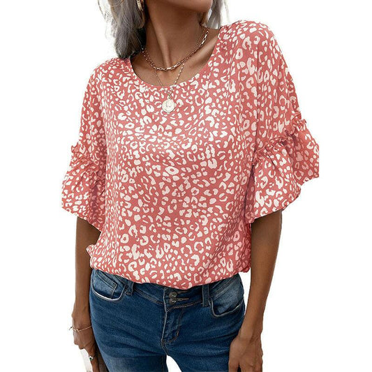 Modisches bedrucktes Oberteil mit ausgestellten Ärmeln für Damen