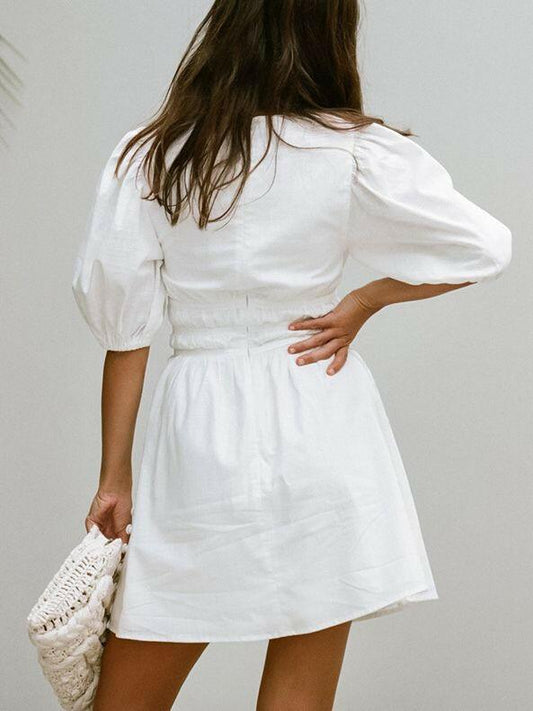 Anmutiges und modisches Damenkleid mit Ausschnitt aus Baumwolle und Puffärmeln