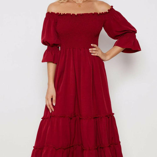 Damenkleid mit quadratischem Kragen, anmutigen Puffärmeln und Rüschen