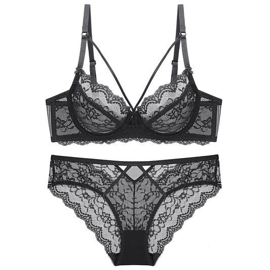 Sexy Lace Bra Set – Thin Cup, Underwire Support, T-Type Style