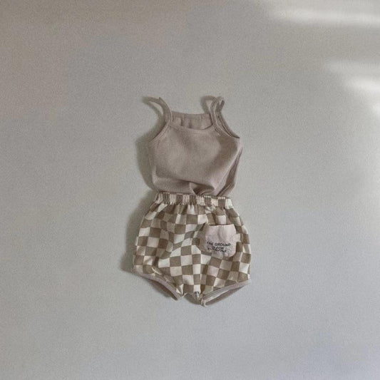 Top Small Sling Plaid Shorts Suit Split Children's Clothing