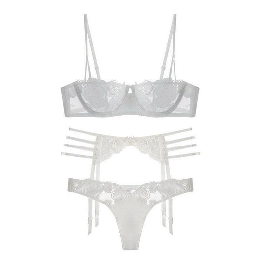 French Rose Pattern Embroidered Lace Sexy Underwear Women Sexy Breathable Bra Set Three Pieces